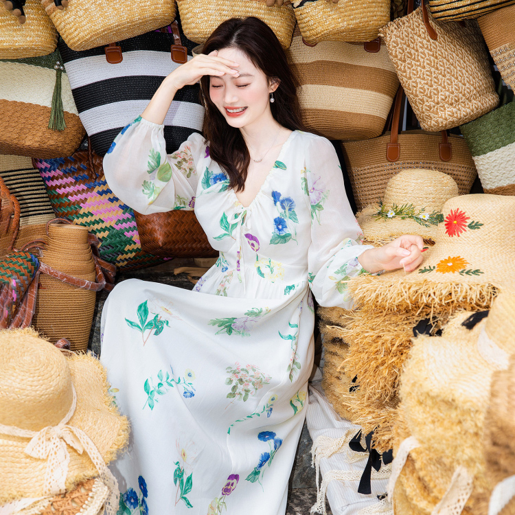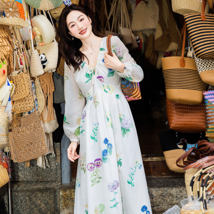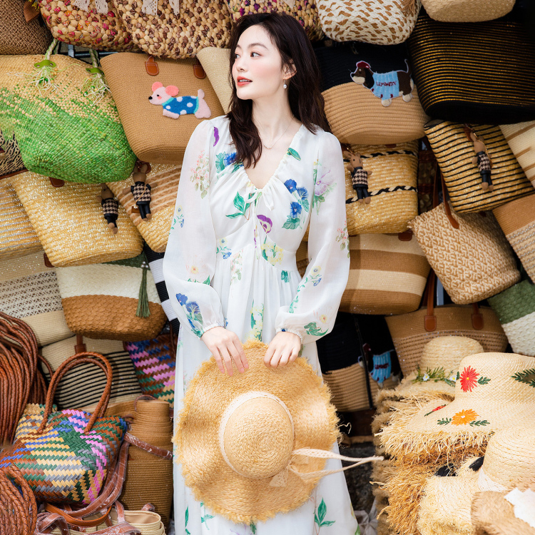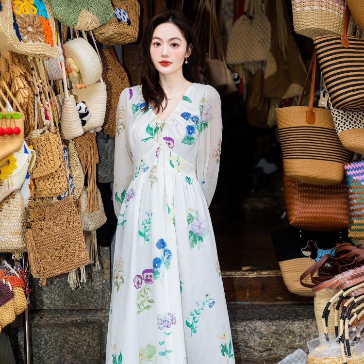 [现售-1个分类-带图]雪纺碎花连衣裙法式绝美沙滩裙度假风长裙云南大理穿搭小个子裙子