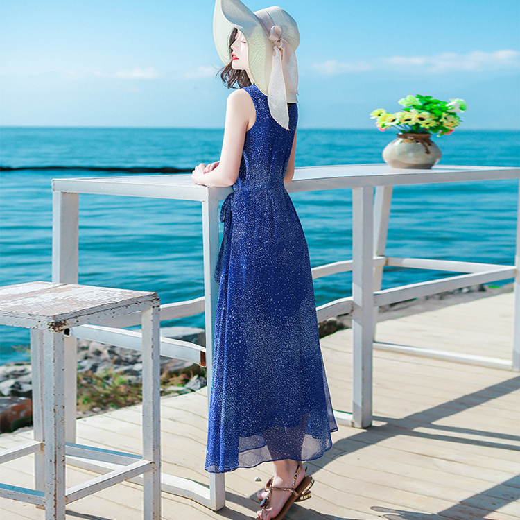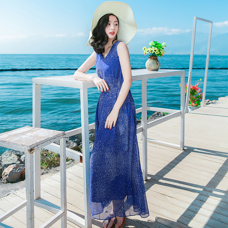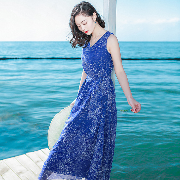 [带图]2025春装新款雪纺连衣裙法式修身显瘦气质长裙三亚海边度假沙滩裙