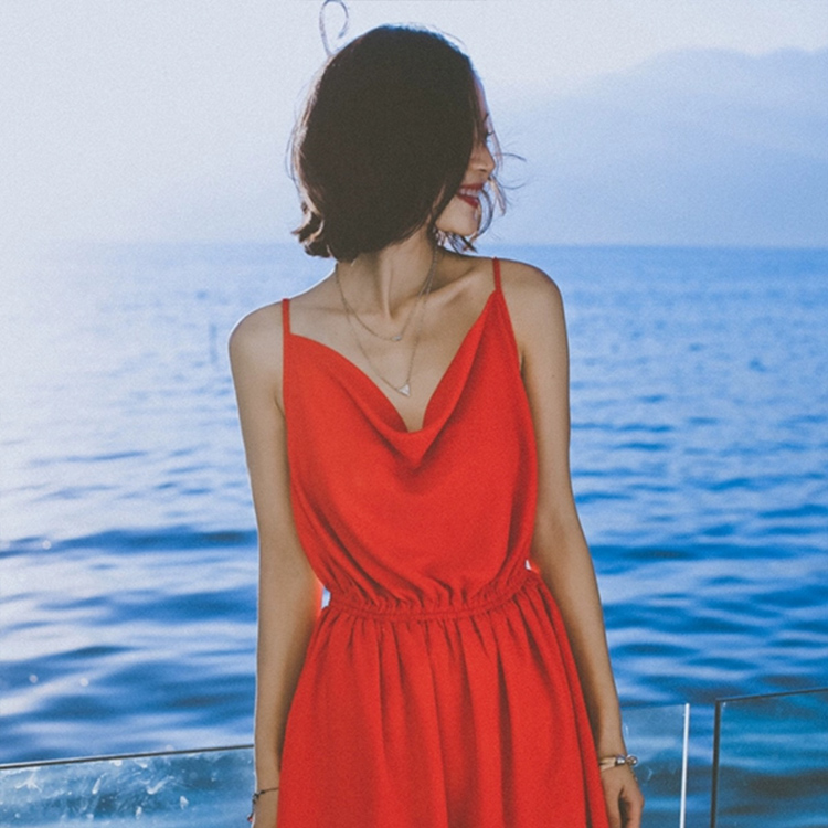 红色吊带连衣裙女小个子性感短裙三亚旅行拍照海边度假沙滩裙夏季